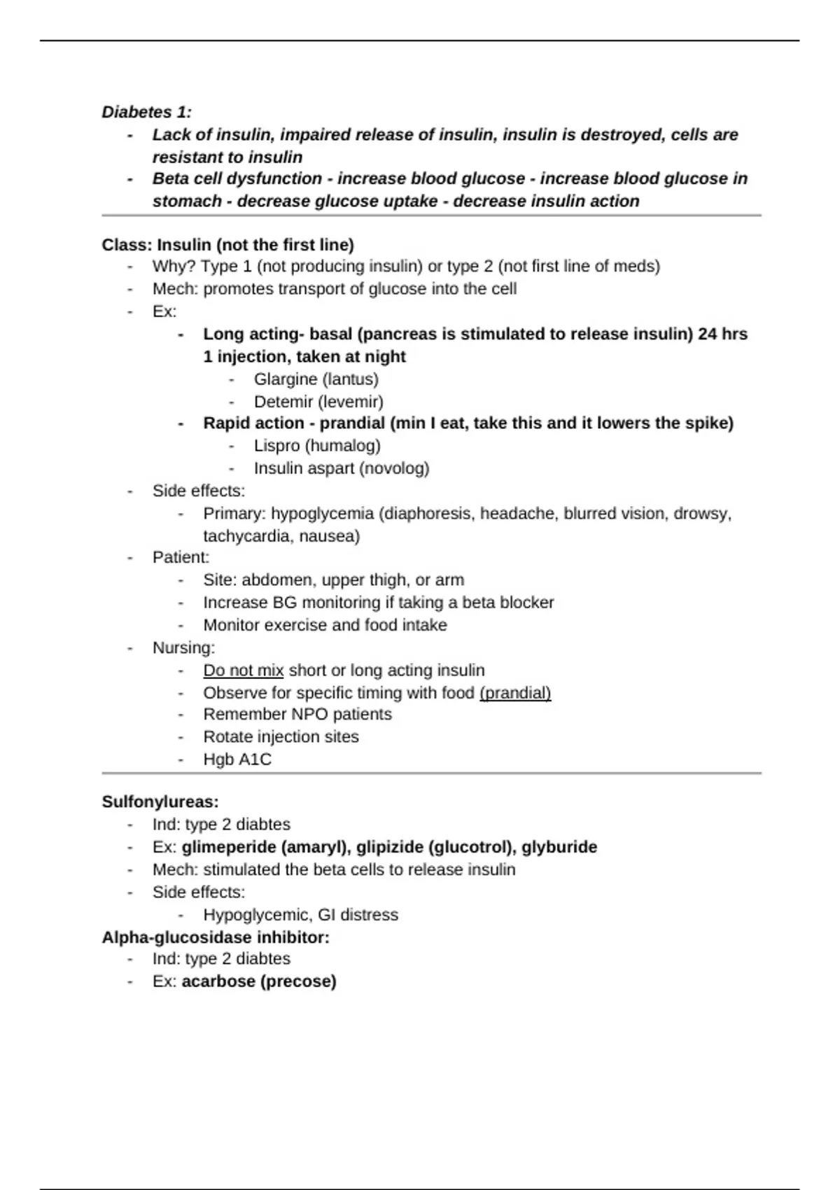 - Mech: promotes transport of glucose into the cell