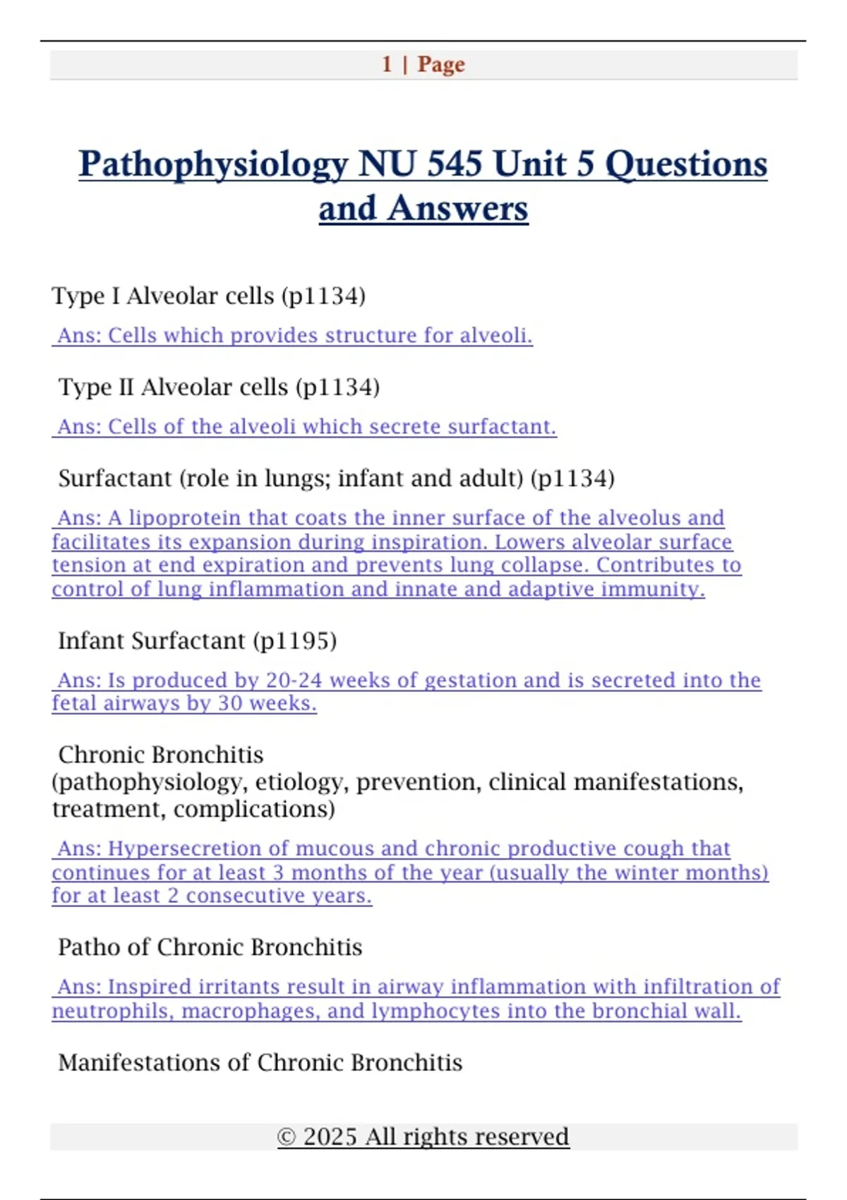 Pathophysiology NU 545 Unit 5 Questions and Answers