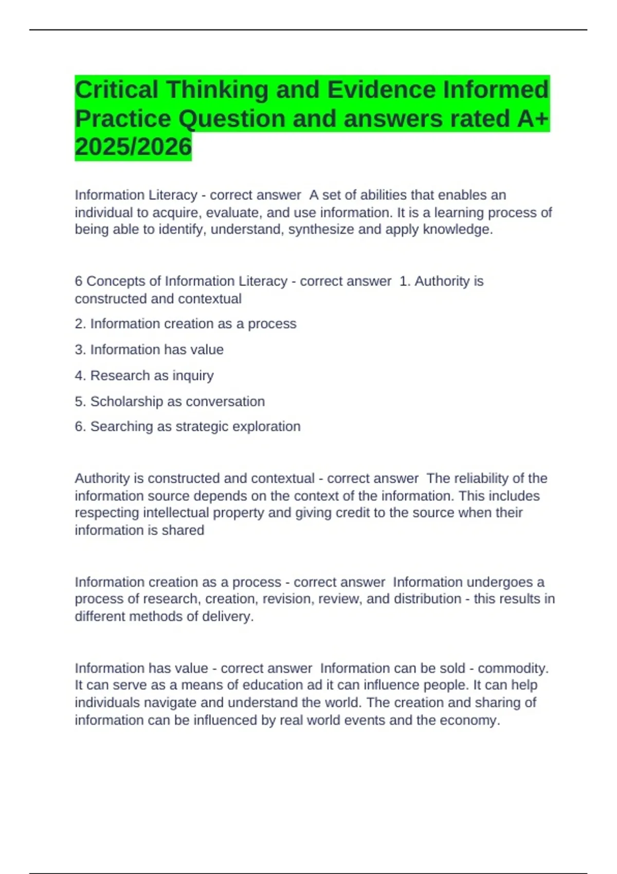 6 Concepts of Information Literacy - correct answer 1. Authority is