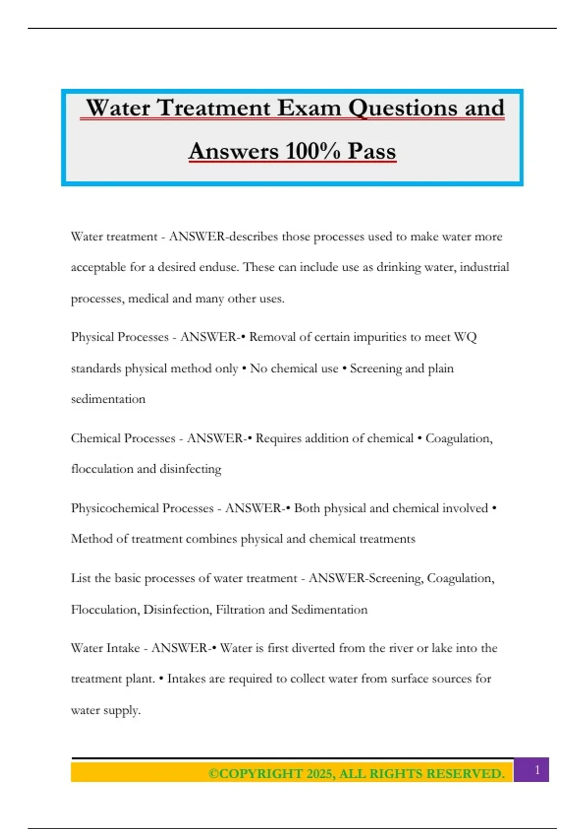 Physical Processes - ANSWER-• Removal of certain impurities to meet WQ