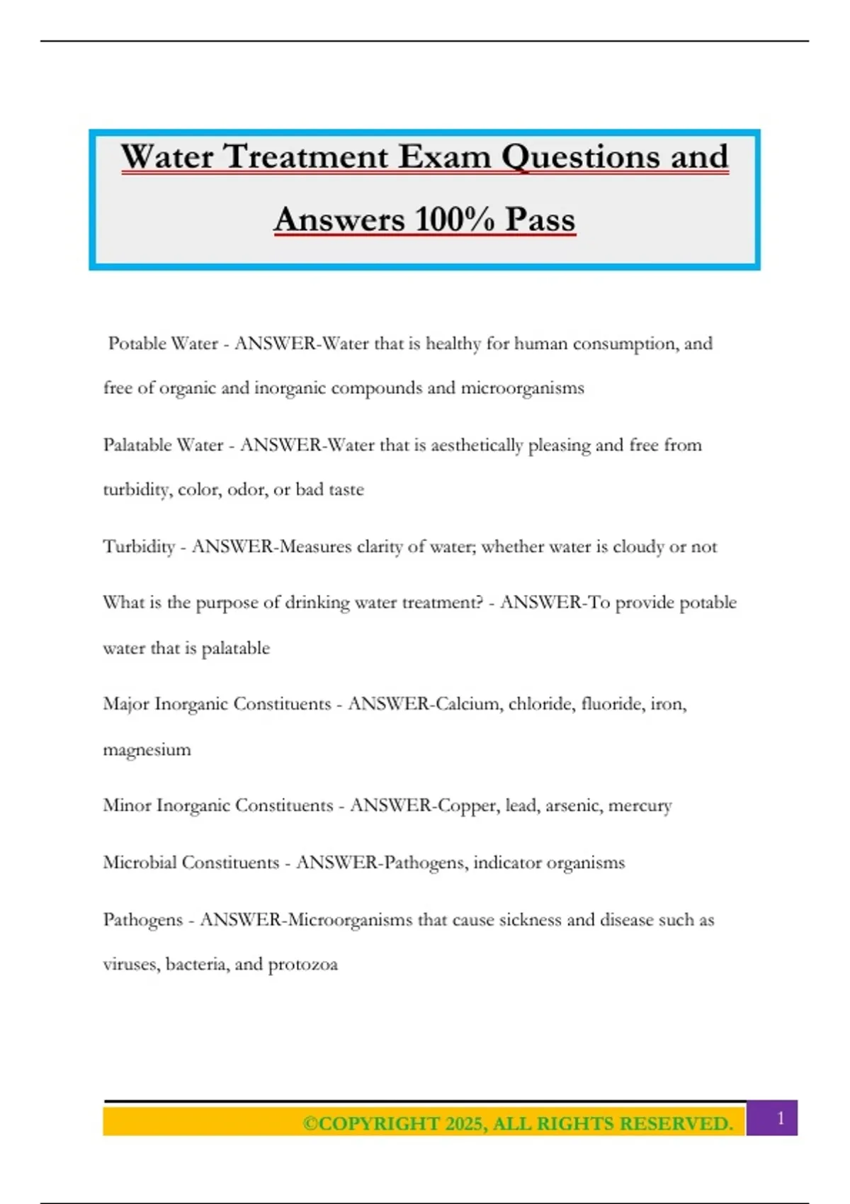 What is the purpose of drinking water treatment? - ANSWER-To provide potable