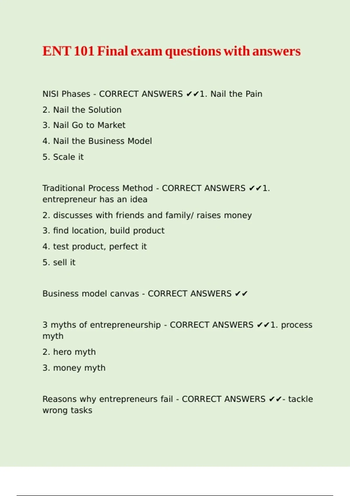 3 myths of entrepreneurship - CORRECT ANSWERS ✔✔1. process