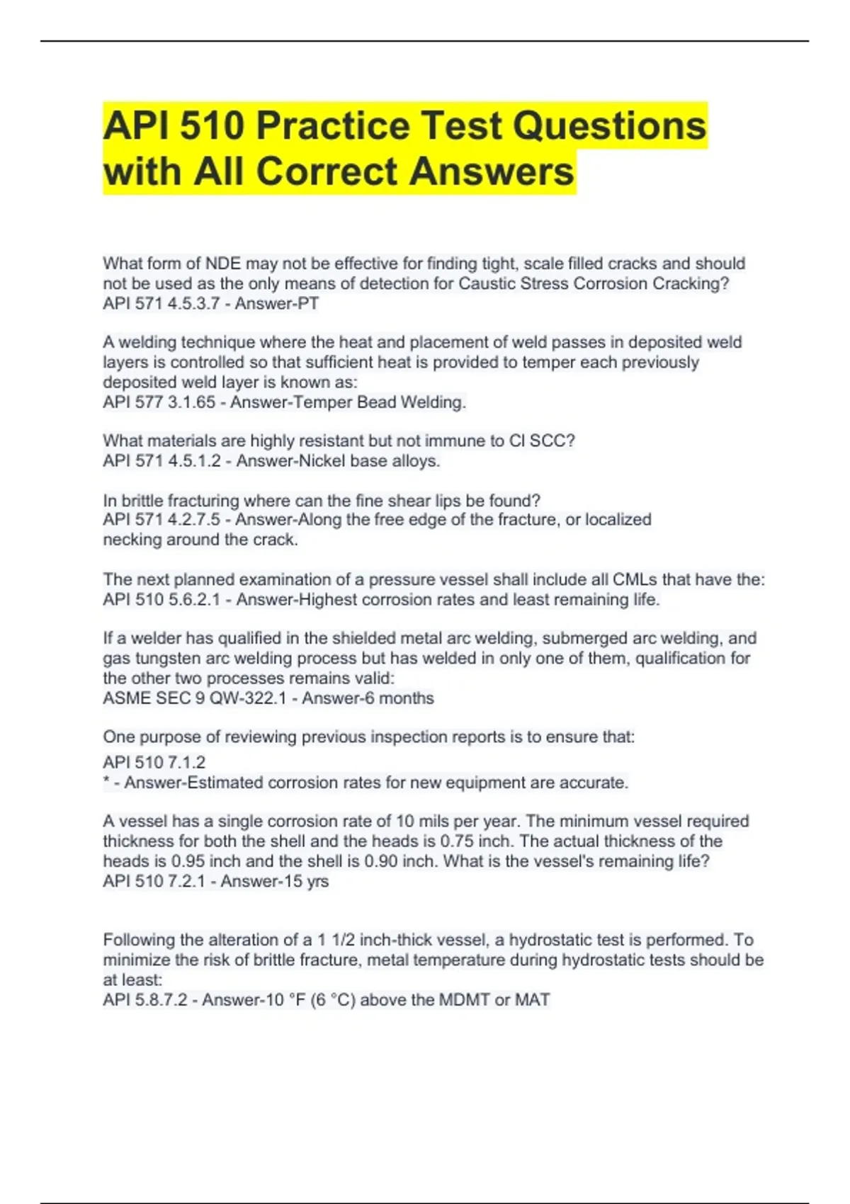 API 510 Practice Test Questions