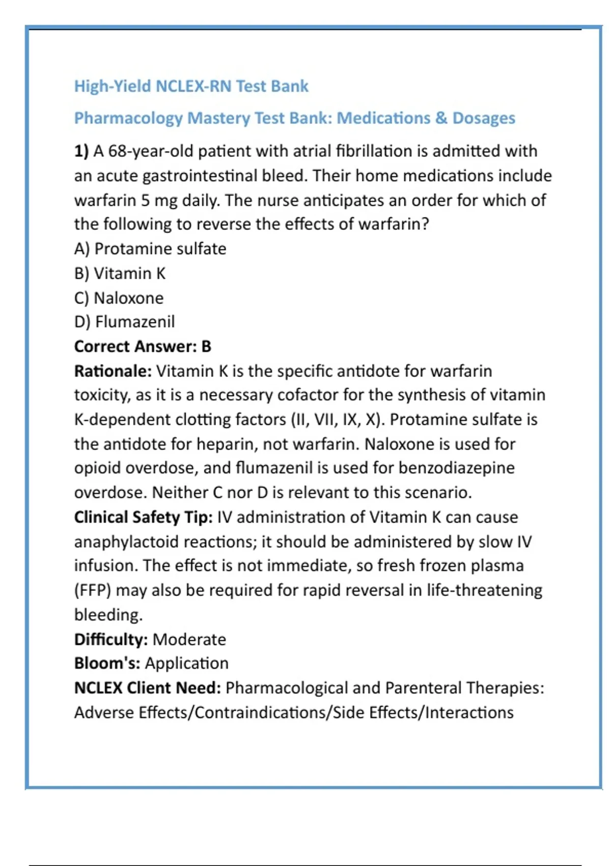 Pharmacology Mastery Test Bank: Medications & Dosages