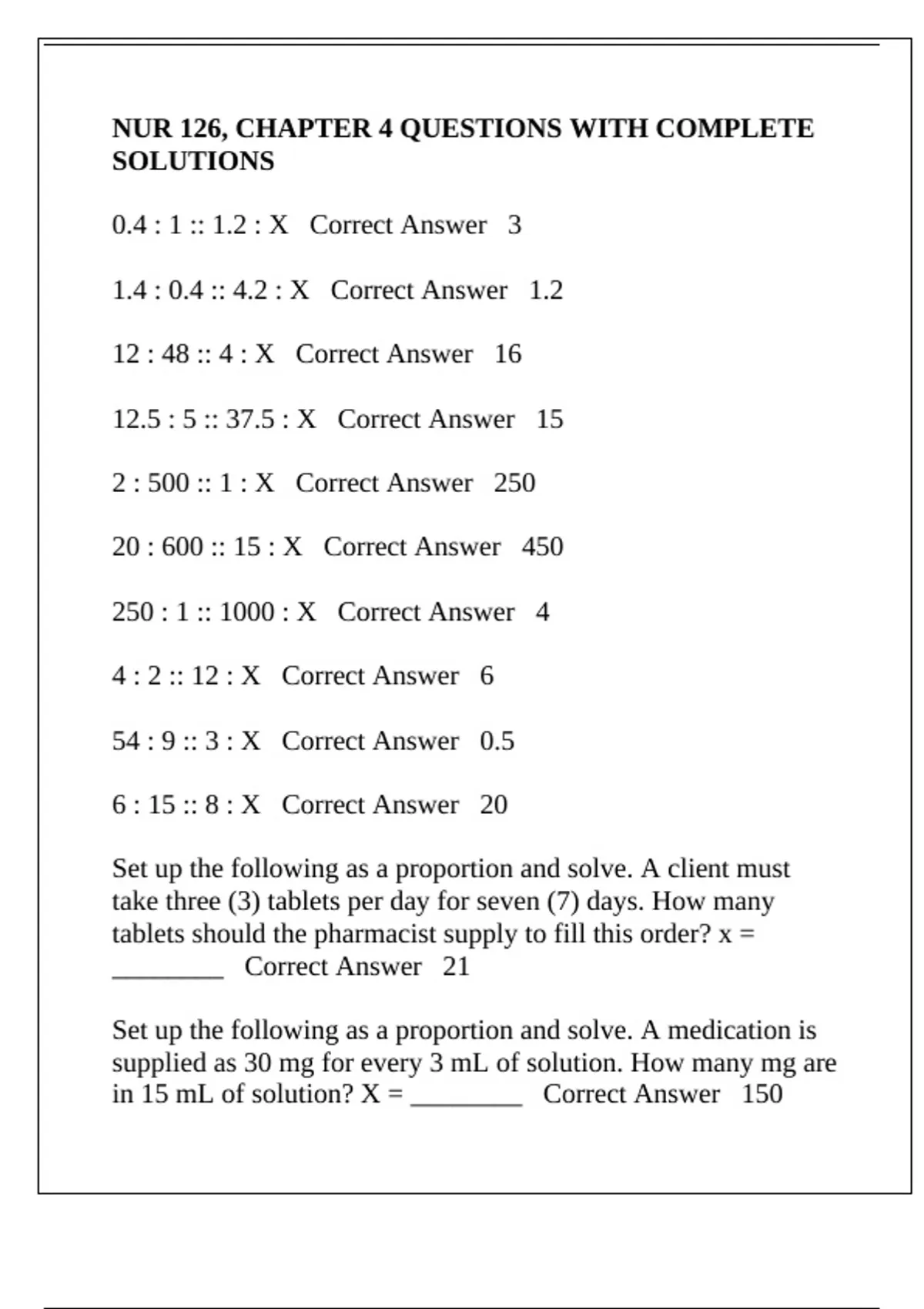 in 15 mL of solution? X = ________ Correct Answer 150