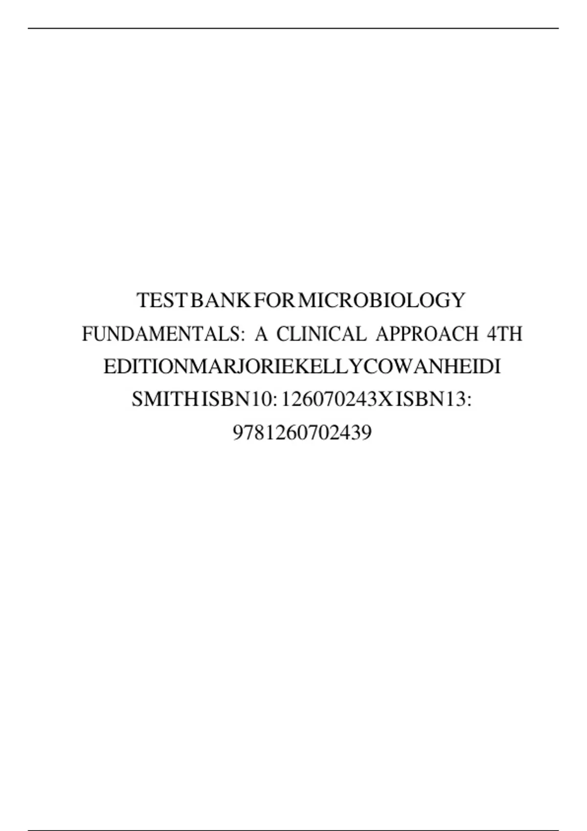,TestBankforMicrobiology Fundamentals: A Clinical Approach,4th Edition,