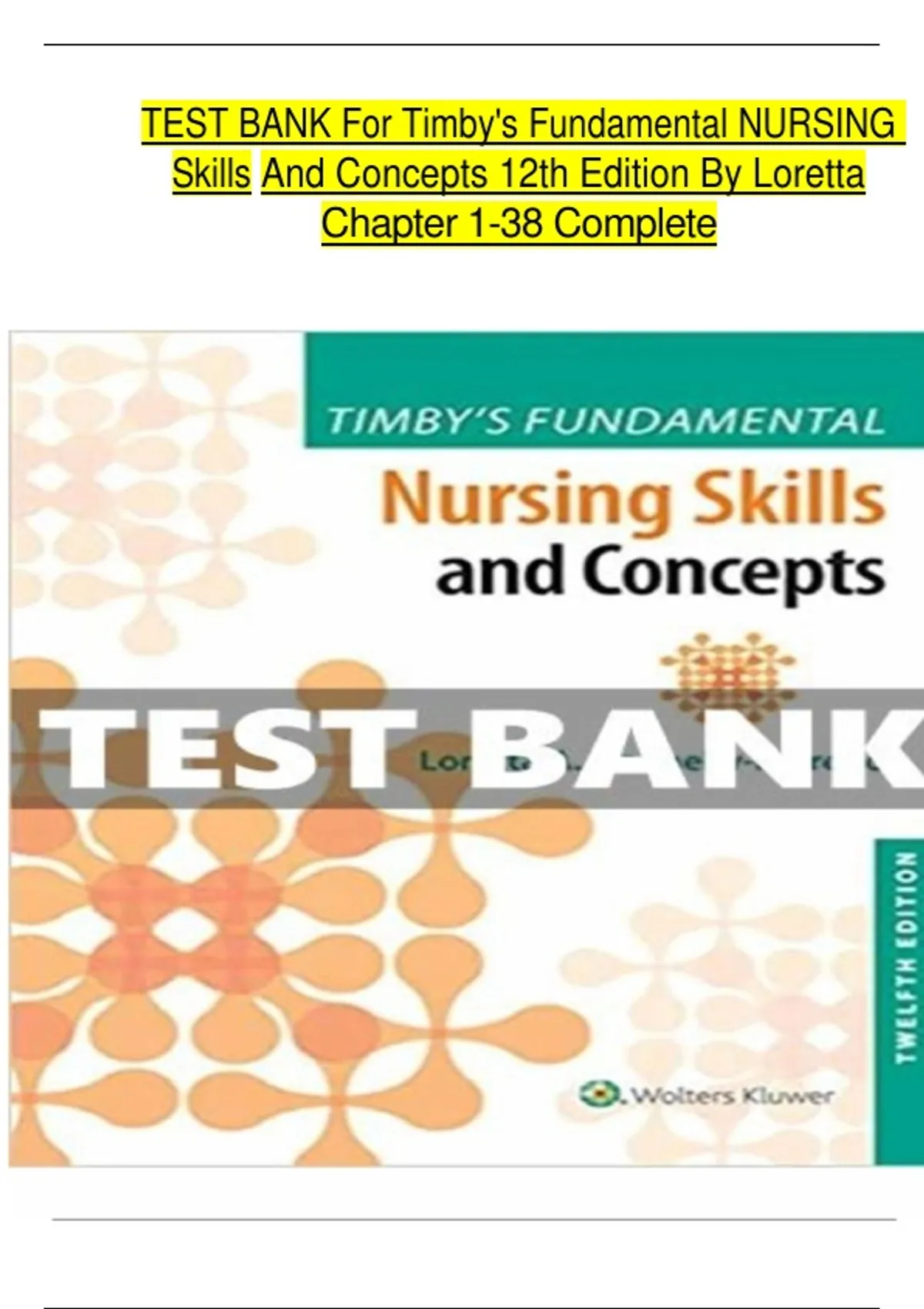 TEST BANK For Timby's Fundamental NURSING