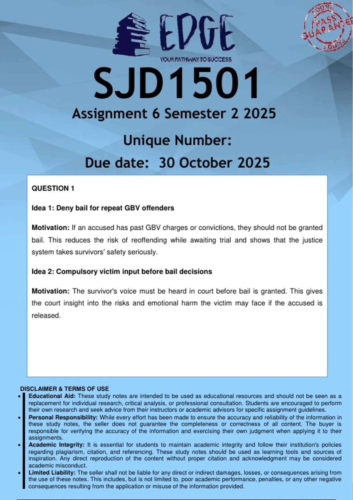 Due date: 30 October 2025