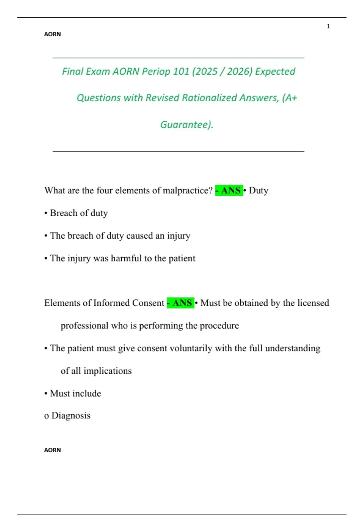 Final Exam AORN Periop 101 () Expected