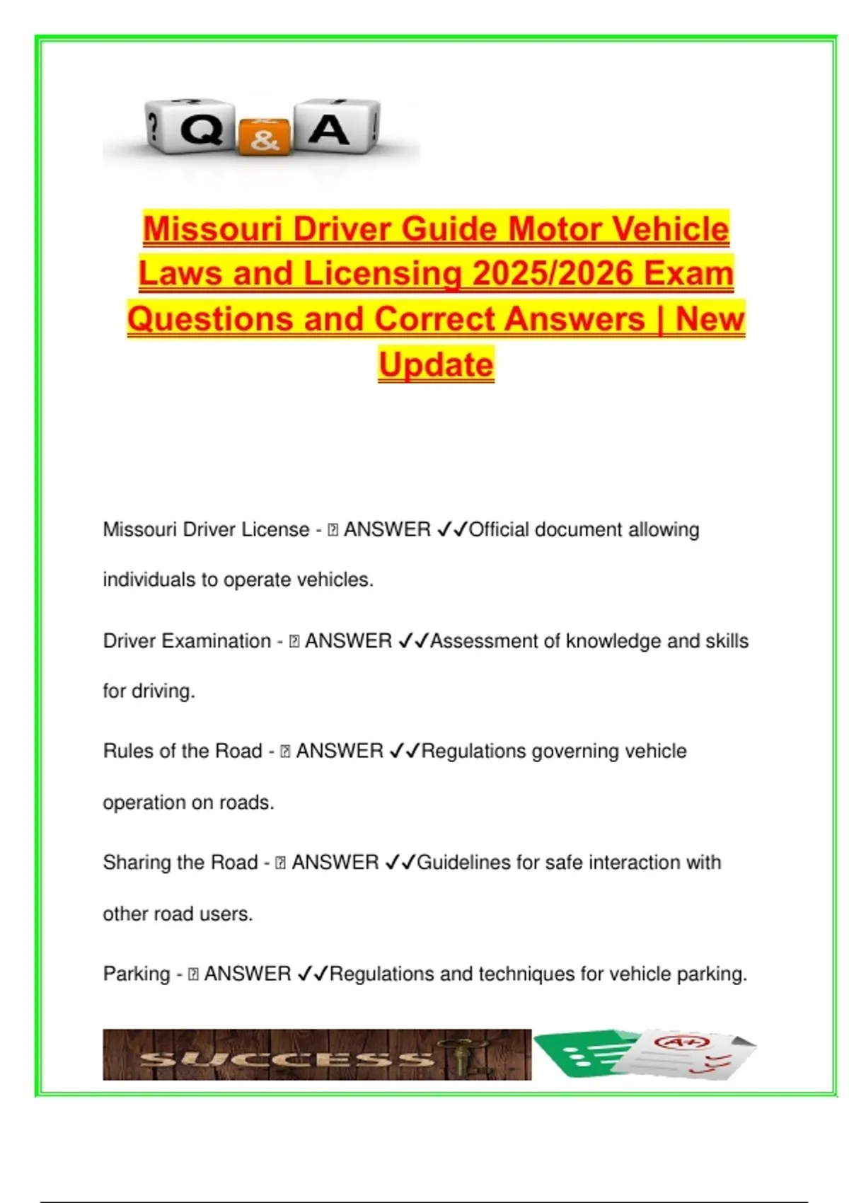 Missouri Driver License Manual - 🧠 ANSWER ✔✔Resource for obtaining a