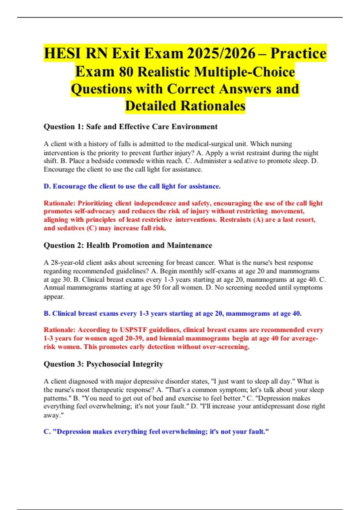 Question 4: Physiological Integrity - Basic Care and Comfort