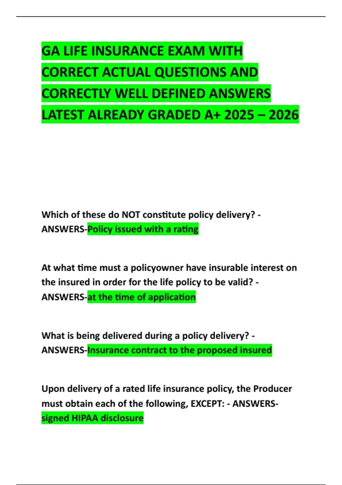ANSWERS-Insurance contract to the proposed insured