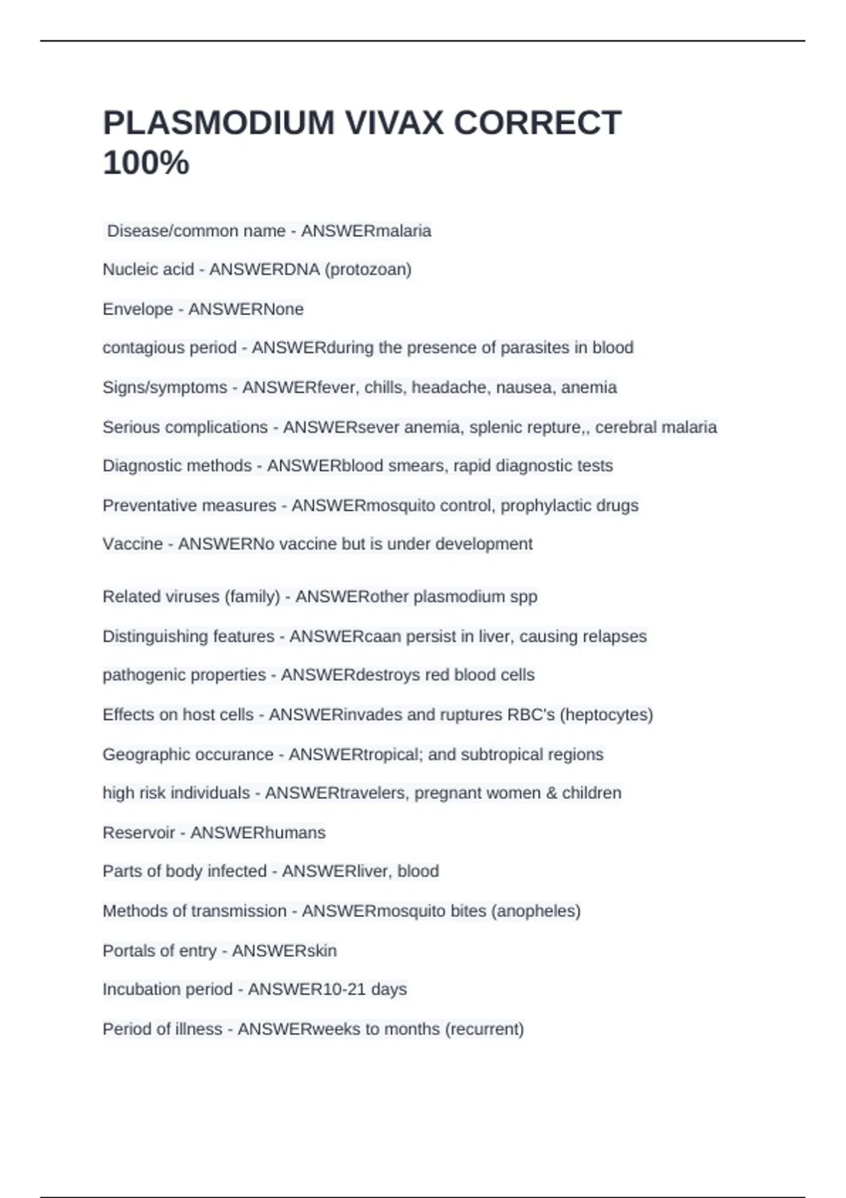 Disease/common name - ANSWERmalaria
