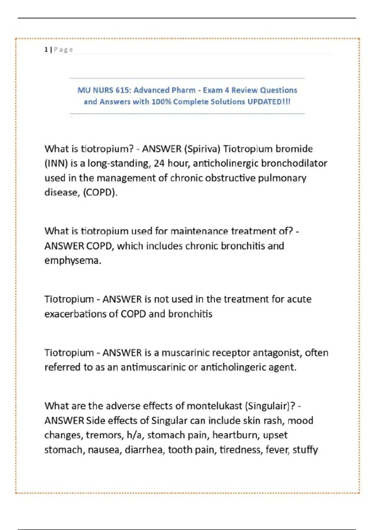 MU NURS 615 Advanced Pharm - Exam 4 Review Questions and Answers with 100% Complete Solutions UPDATED!!!