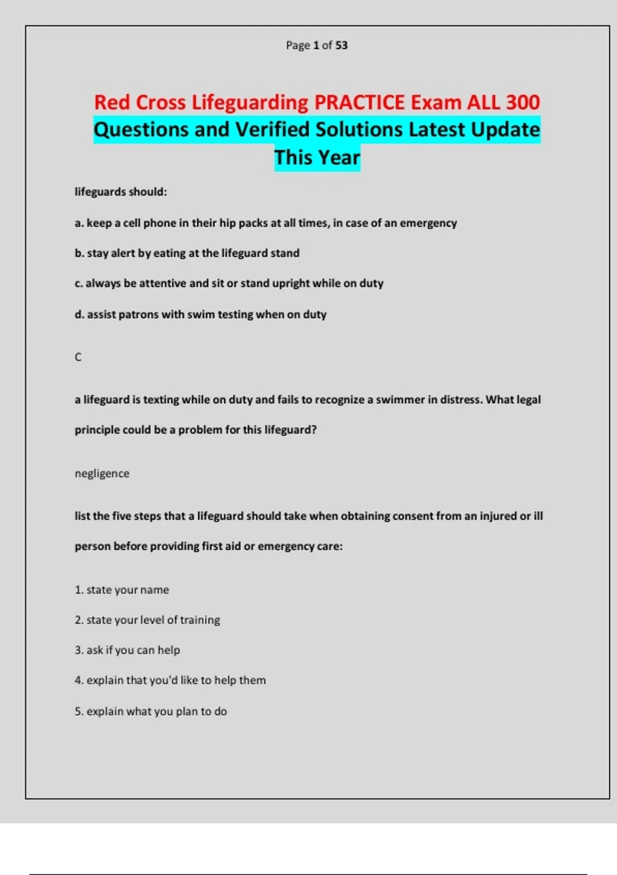 Red Cross Lifeguarding PRACTICE Exam ALL 300