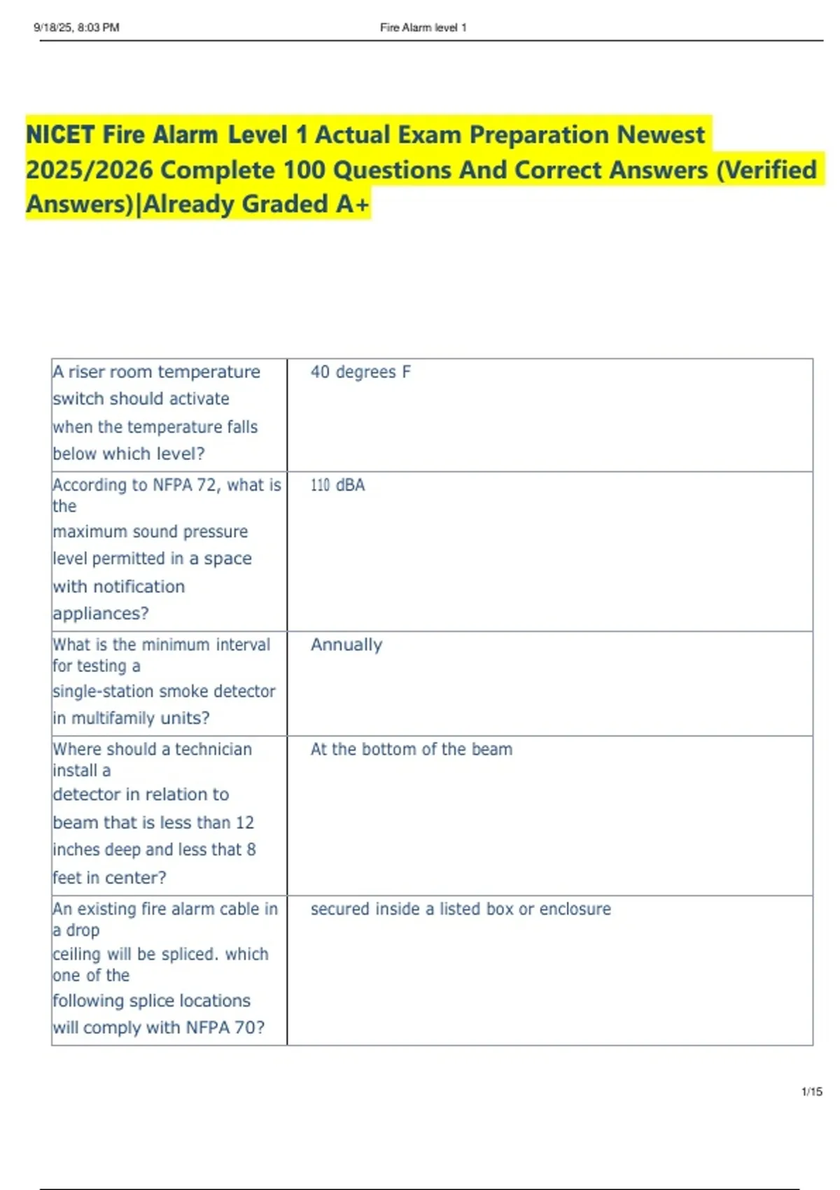NICET Fire Alarm Level 1 Actual Exam Preparation Newest