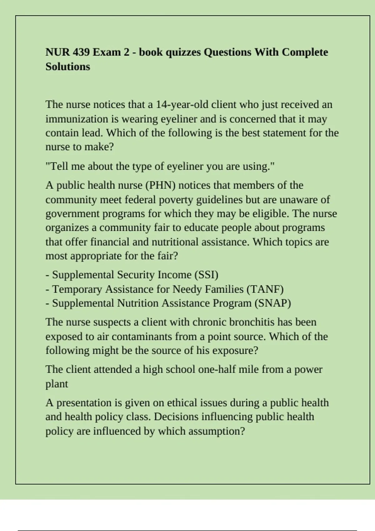 NUR 439 Exam 2 - book quizzes Questions With Complete