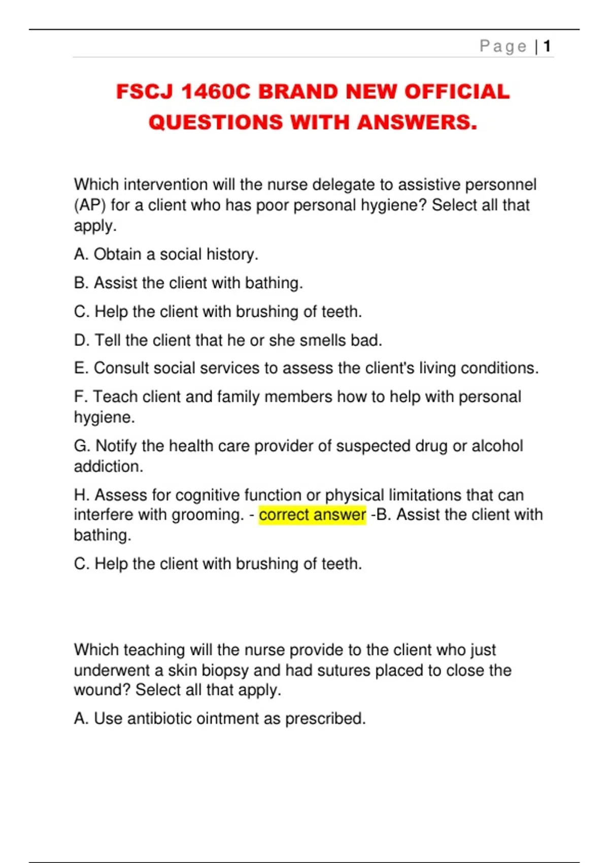 FSCJ 1460C BRAND NEW OFFICIAL QUESTIONS WITH ANSWERS.