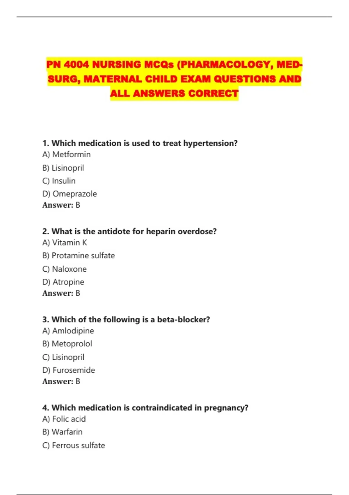 PN 4004 NURSING MCQs (PHARMACOLOGY, MED-