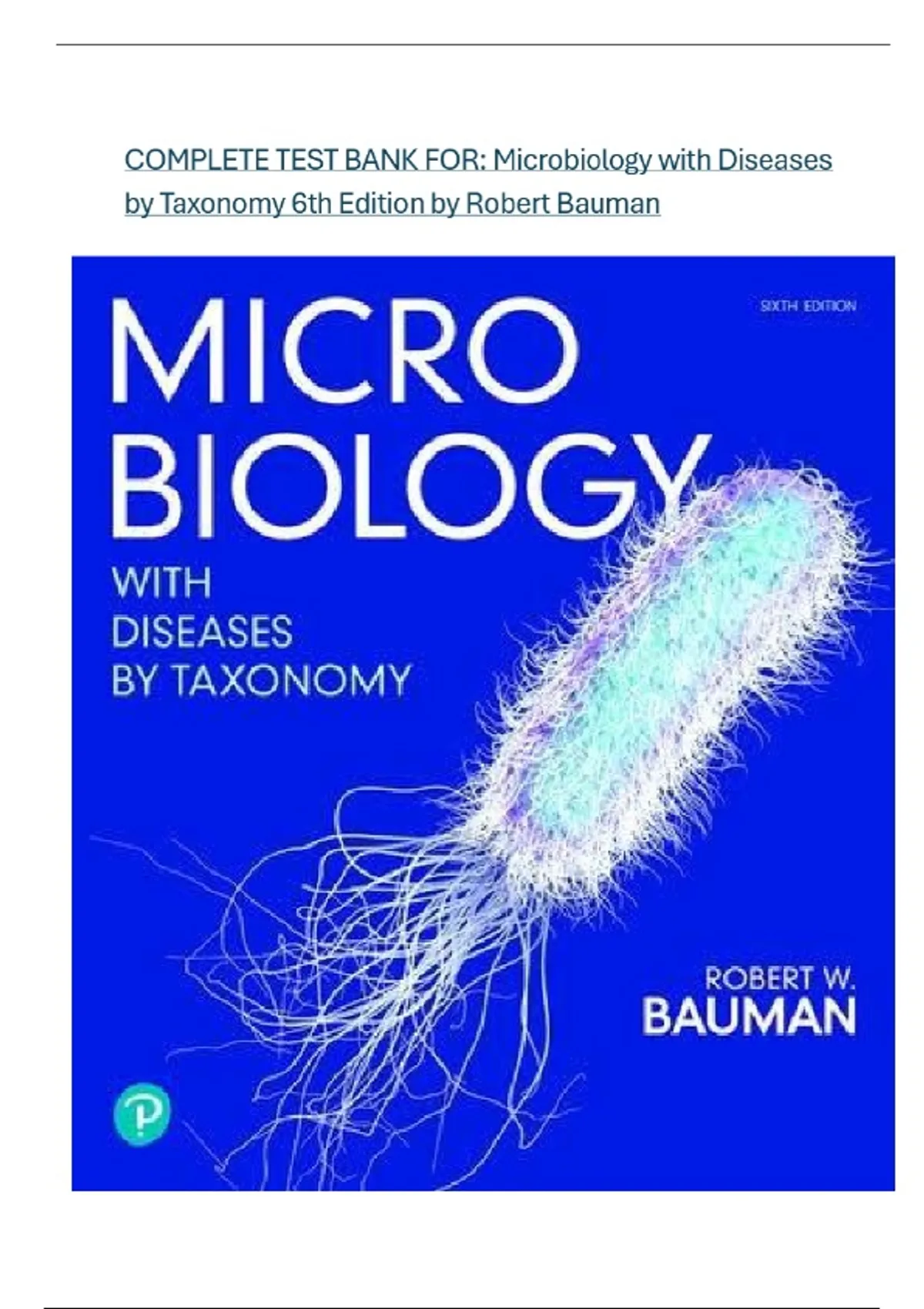 COMPLETE TEST BANK FOR: Microbiology with Diseases by Taxonomy 6th Edition by Robert Bauman (Author) Latest Update.