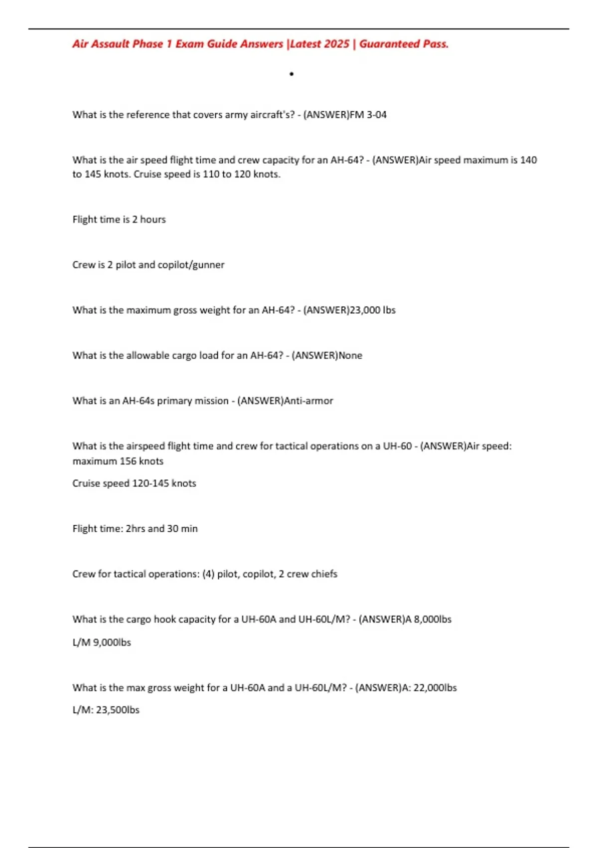 , Air Assault Phase 1 Exam Guide Answers |Latest 2025 | Guaranteed Pass.