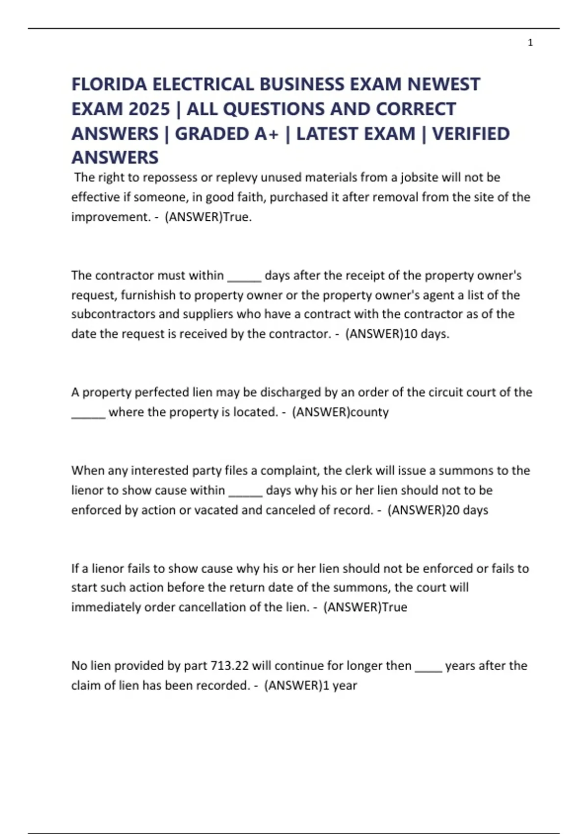 FLORIDA ELECTRICAL BUSINESS EXAM NEWEST