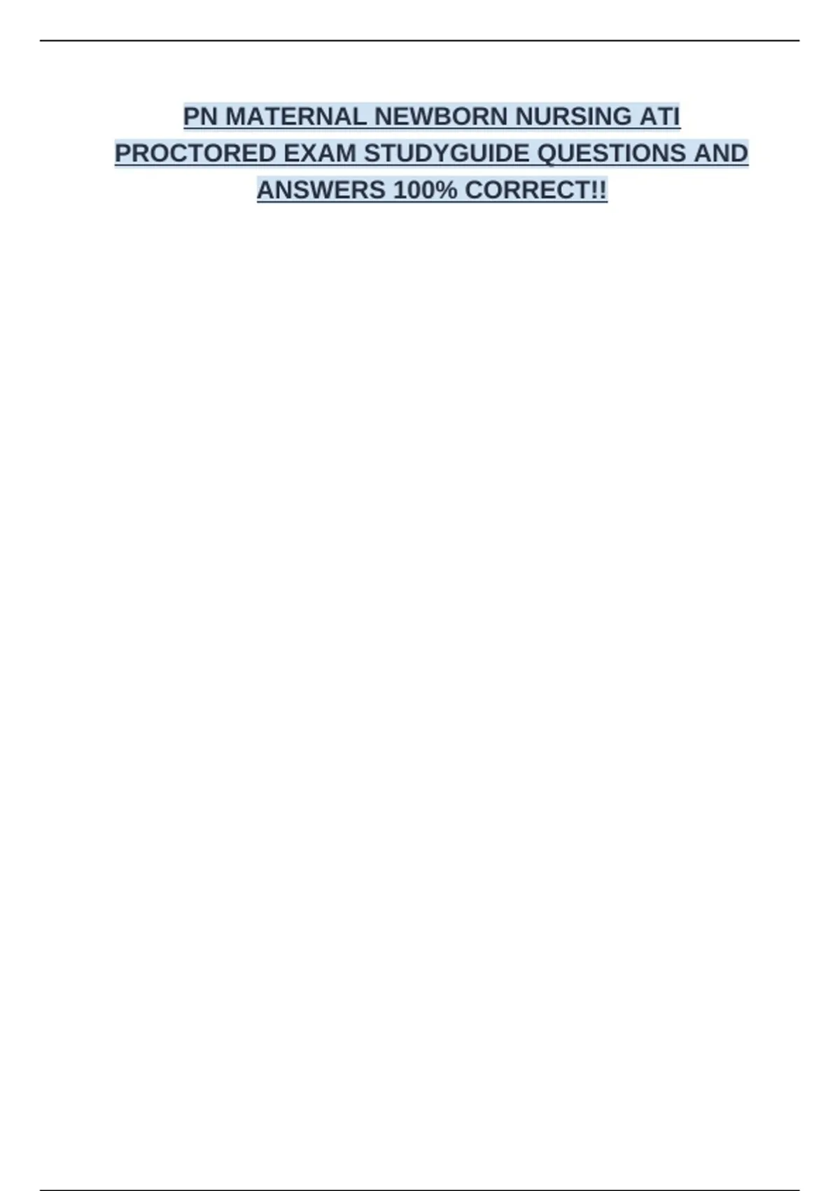 PN MATERNAL NEWBORN NURSING ATI PROCTORED EXAM STUDYGUIDE QUESTIONS AND ANSWERS 100% CORRECT!!