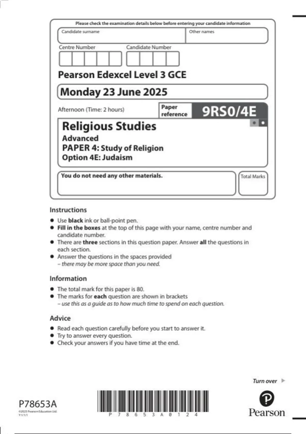 EDEXCEL religious studies 9rs0-4e judaism june-2025.