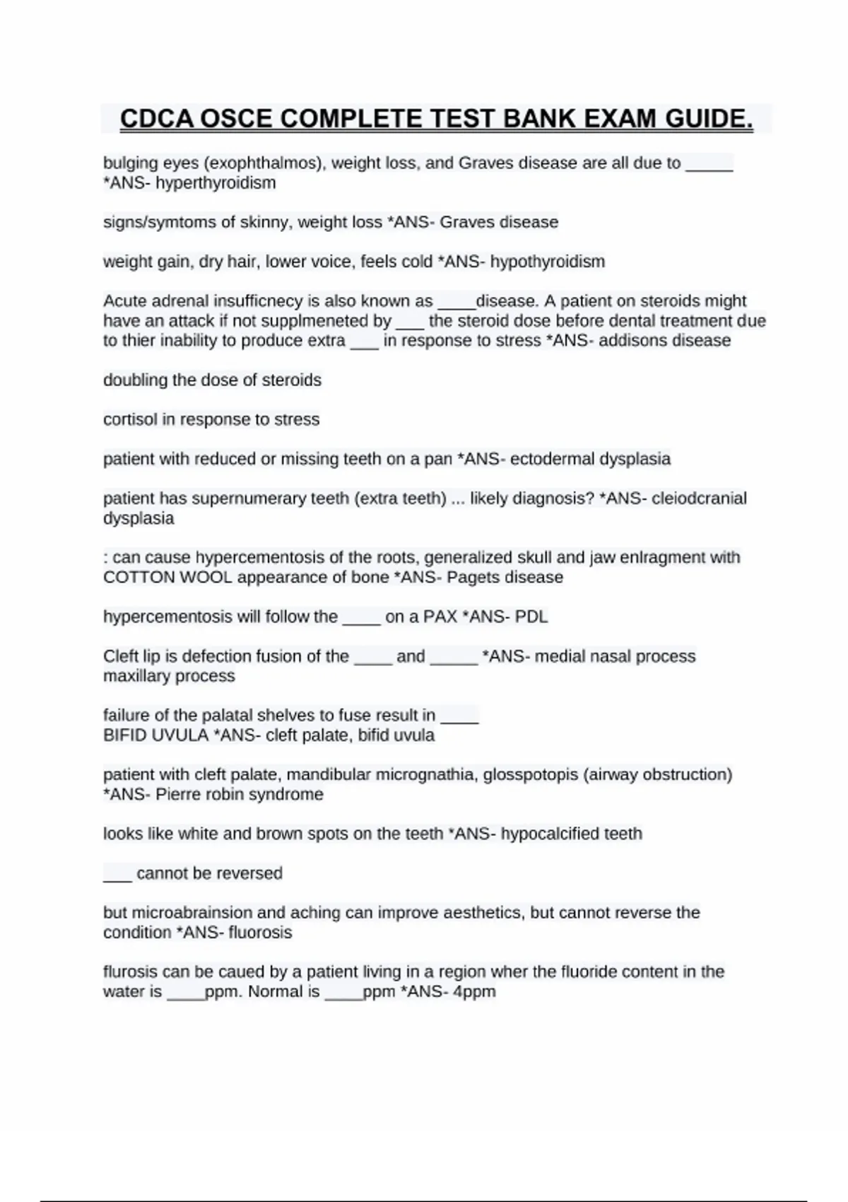 TEST BANK FOR CDCA OSCE COMPLETE EXAM GUIDE. QUESTIONS WITH 100% VERIFIED SOLUTIONS