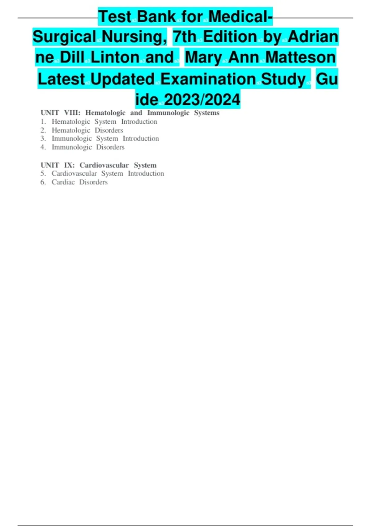 , Test Bank for Medical-a3 a3 a3