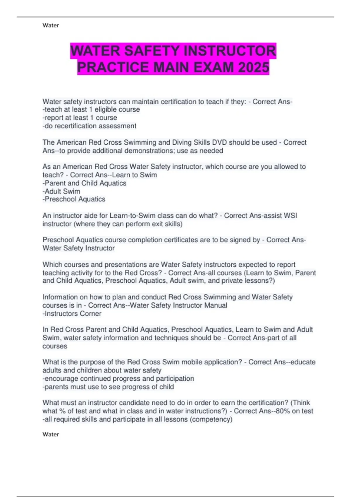 courses is in - Correct Ans--Water Safety Instructor Manual