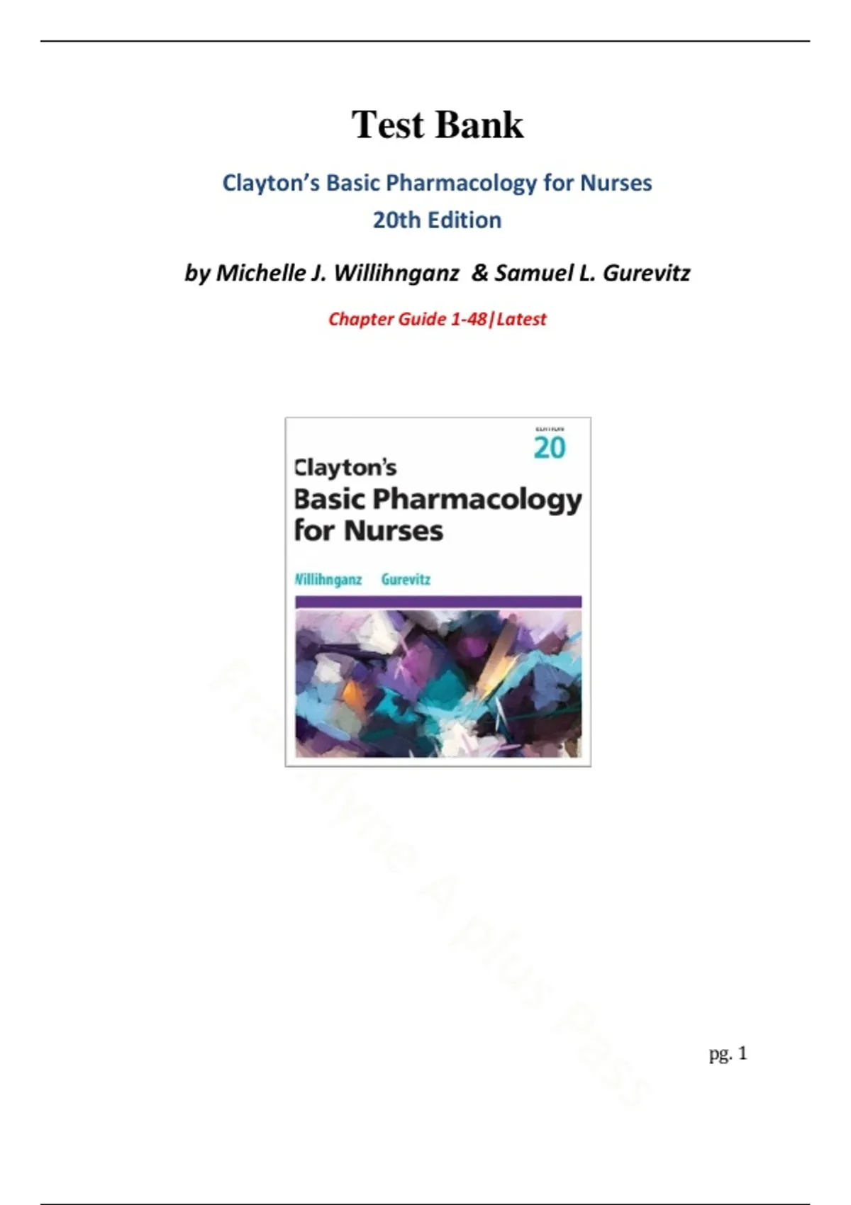 Test Bank Clayton’s Basic Pharmacology for Nurses 20th Edition by Michelle J. Willihnganz & Samuel L. Gurevitz Chapter Guide 1-48|Latest