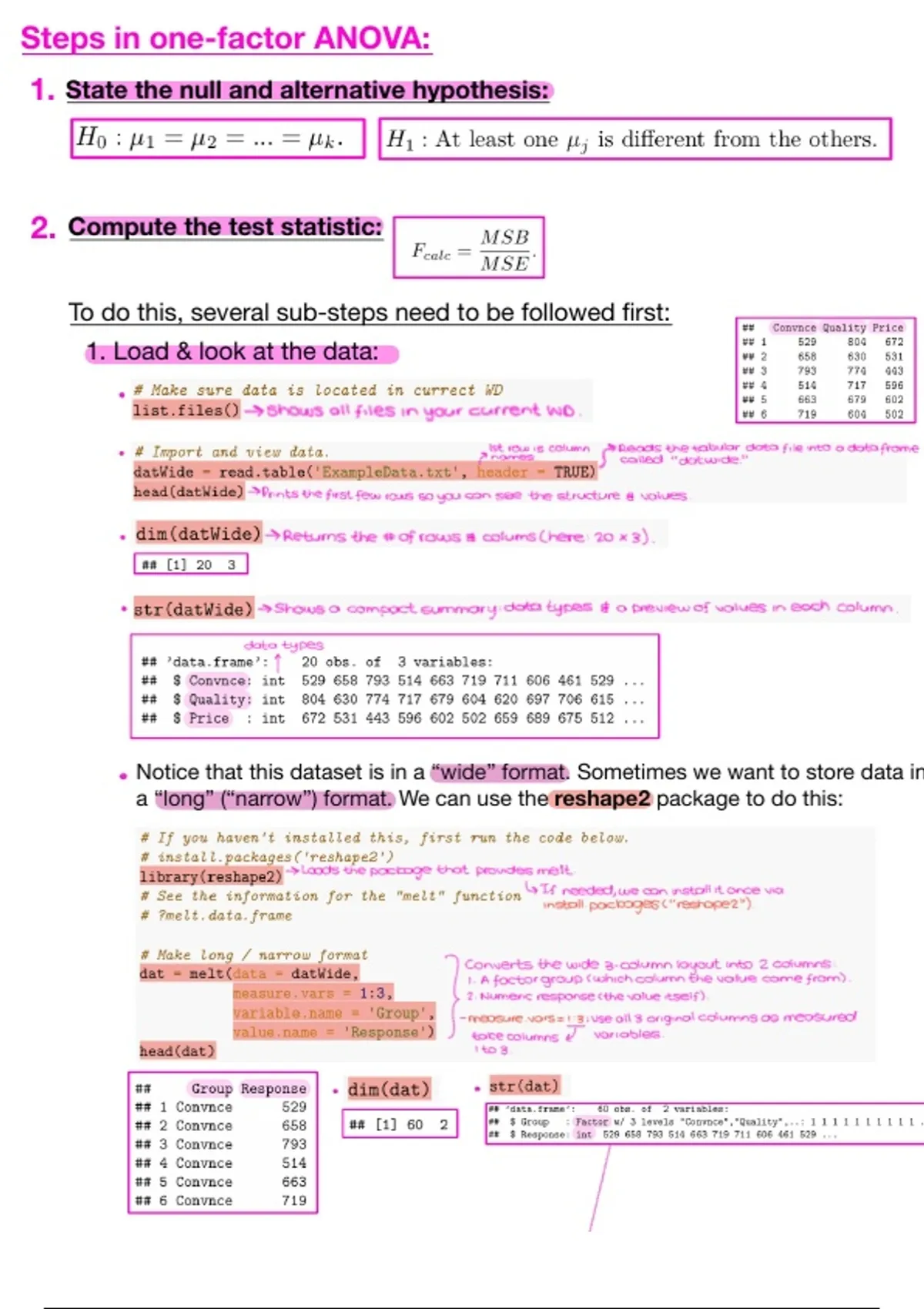 Steps in one-factor ANOVA: