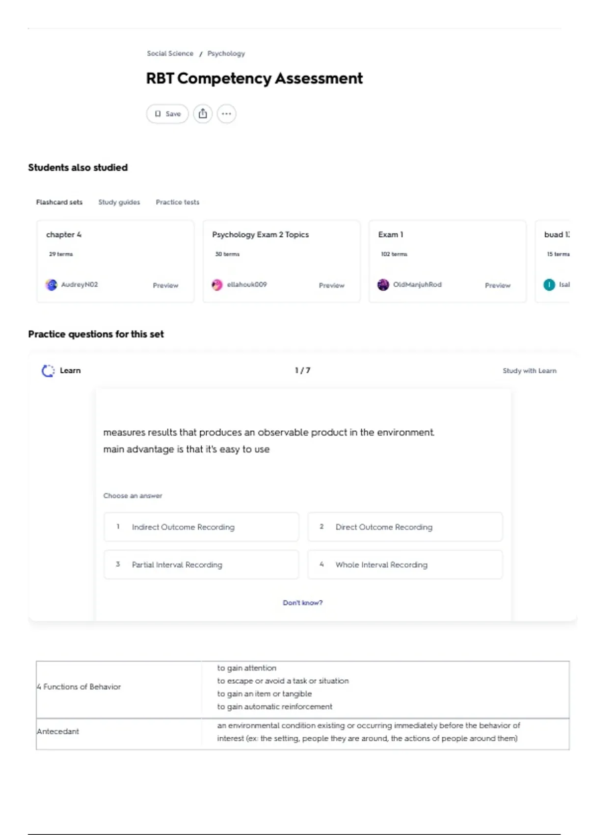 1 Indirect Outcome Recording 2 Direct Outcome Recording