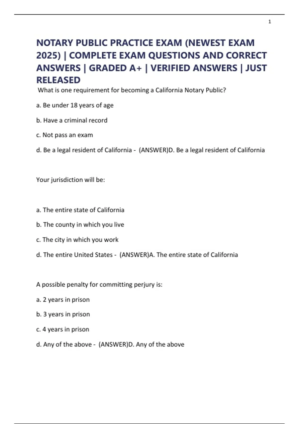 NOTARY PUBLIC PRACTICE EXAM (NEWEST EXAM