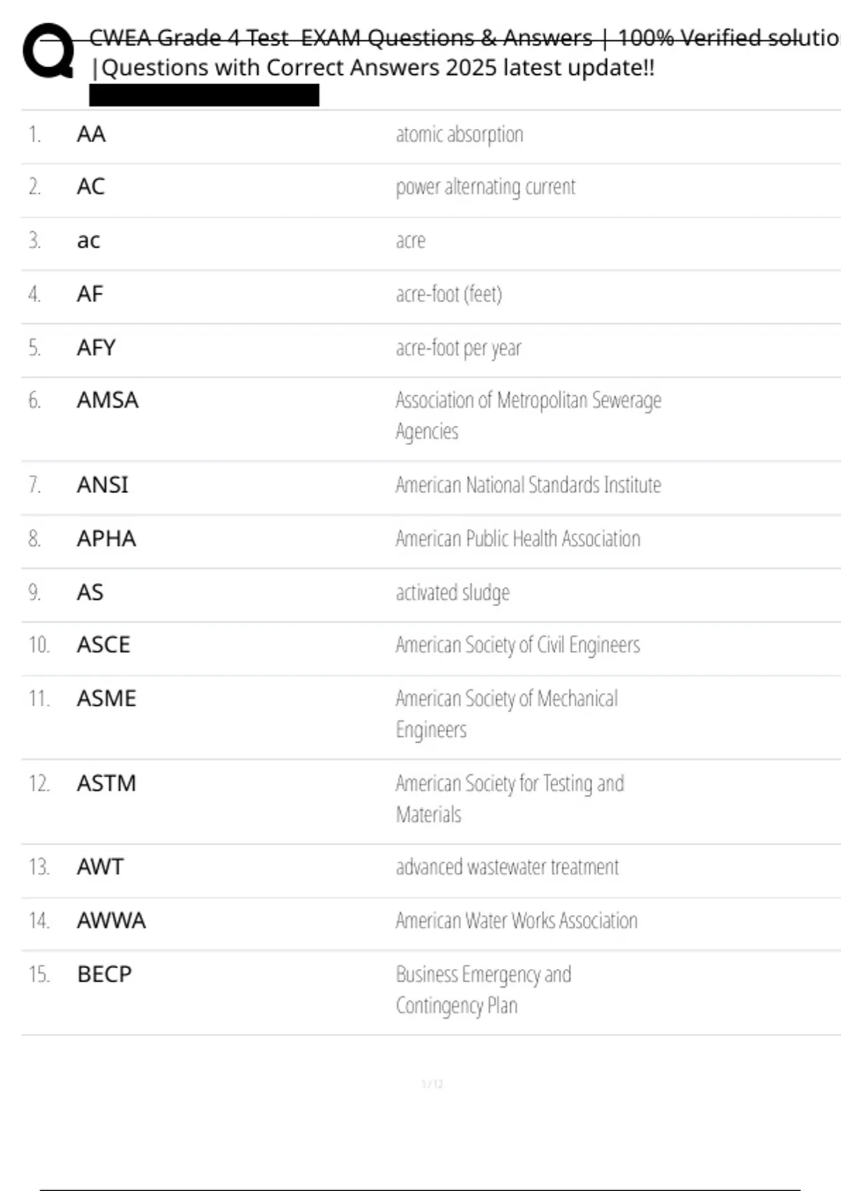 , CWEA Grade 4 Test EXAM Questions & Answers | 100% Verified solution