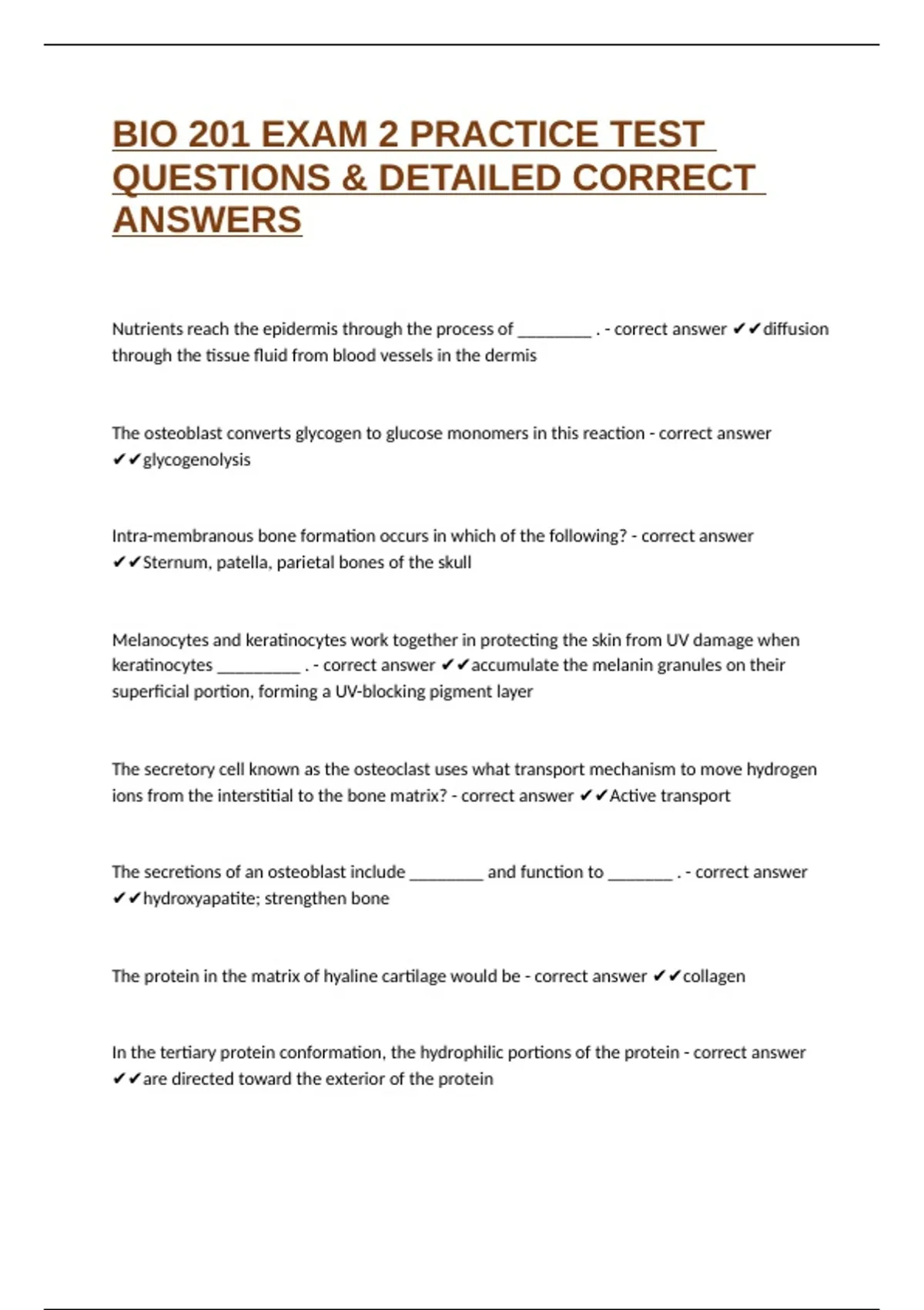 BIO 201 EXAM 2 PRACTICE TEST QUESTIONS & DETAILED CORRECT ANSWERS