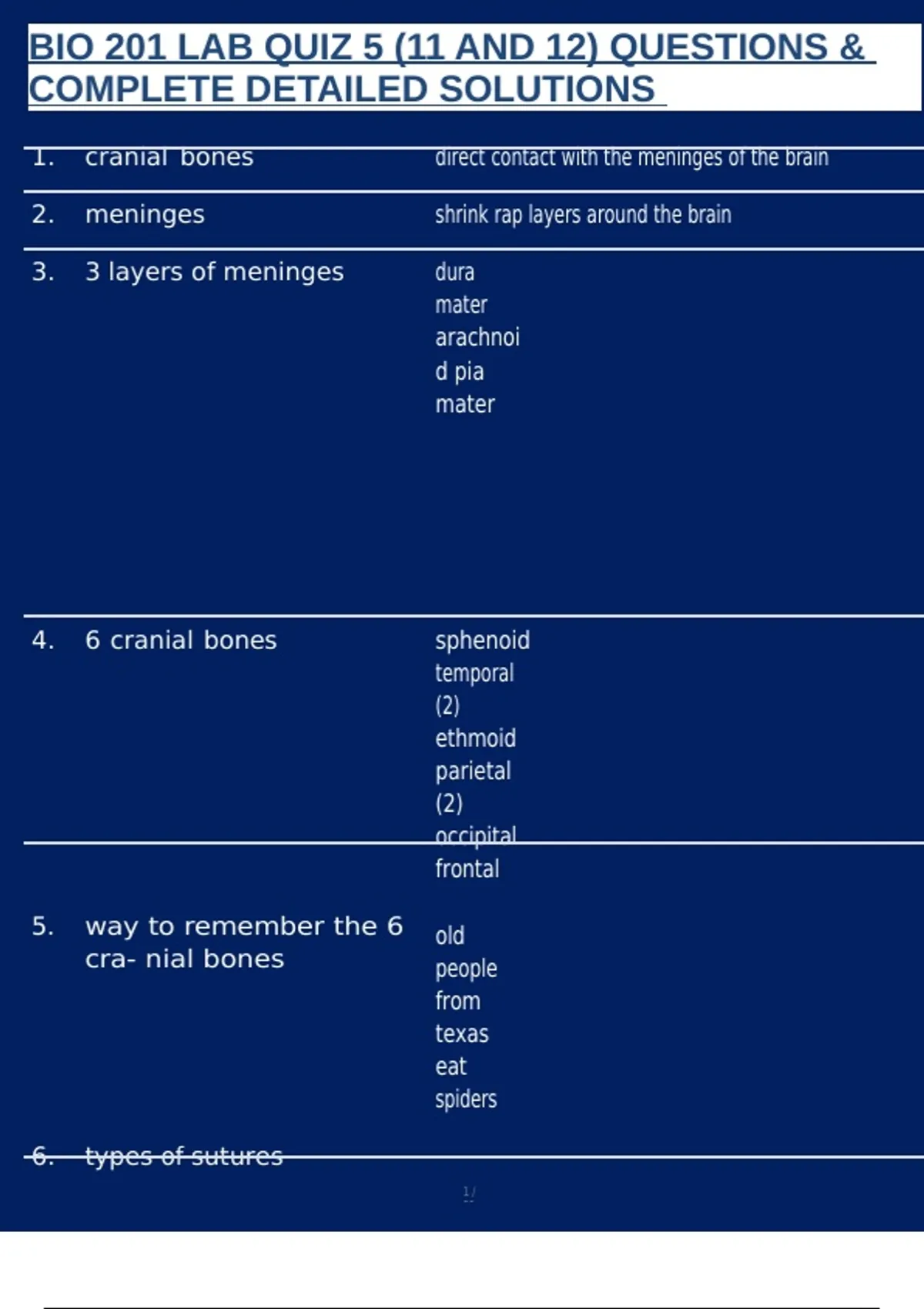 7. coronal suture frontal and parietal bones