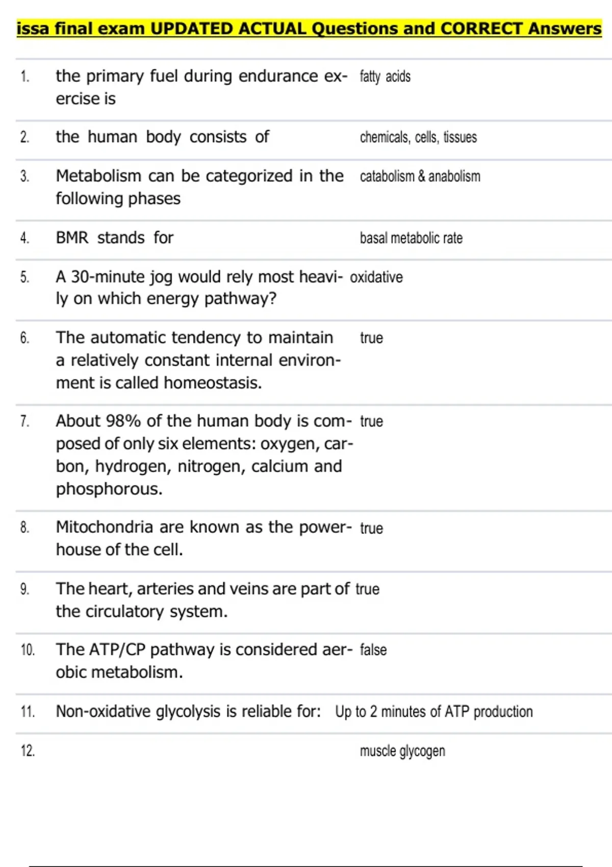 12. muscle glycogen