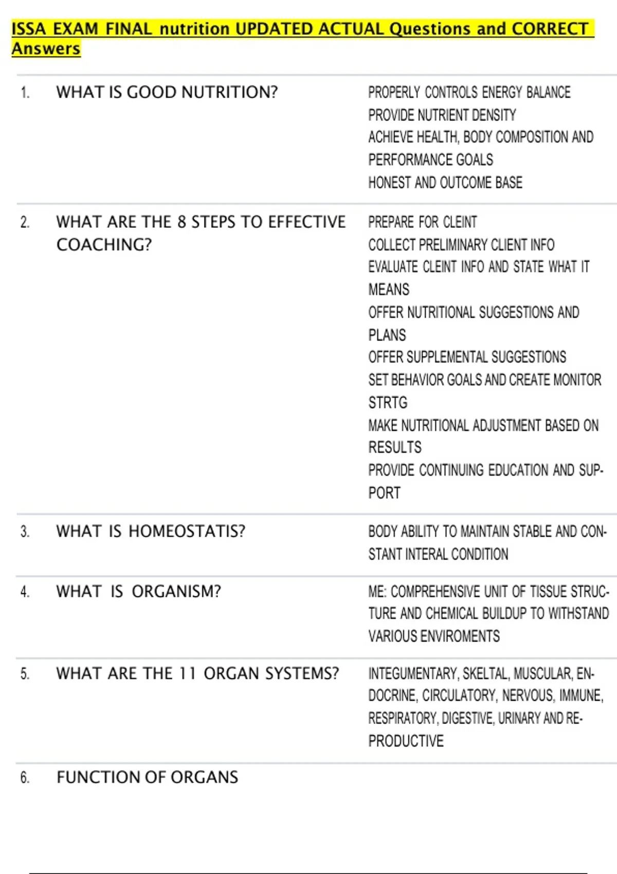 ISSA EXAM FINAL nutrition UPDATED ACTUAL Questions and CORRECT