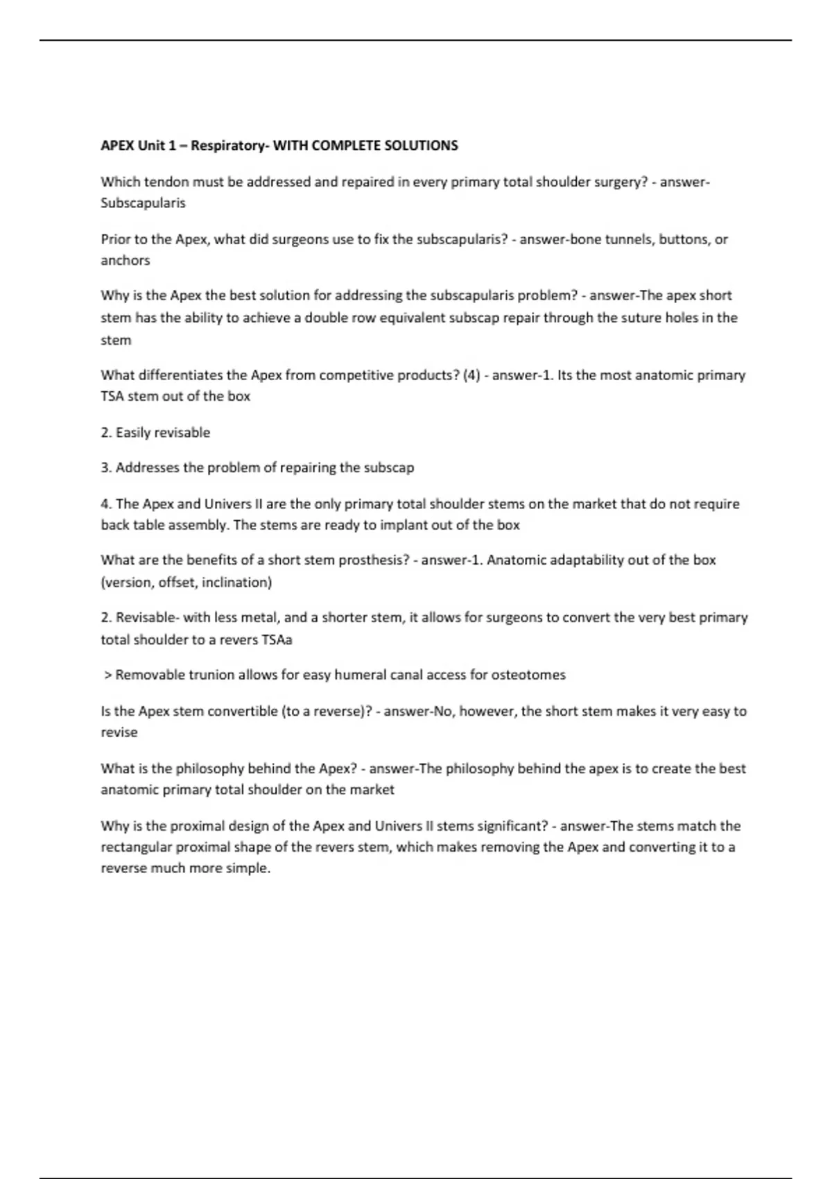 APEX Unit 1 – Respiratory- WITH COMPLETE SOLUTIONS