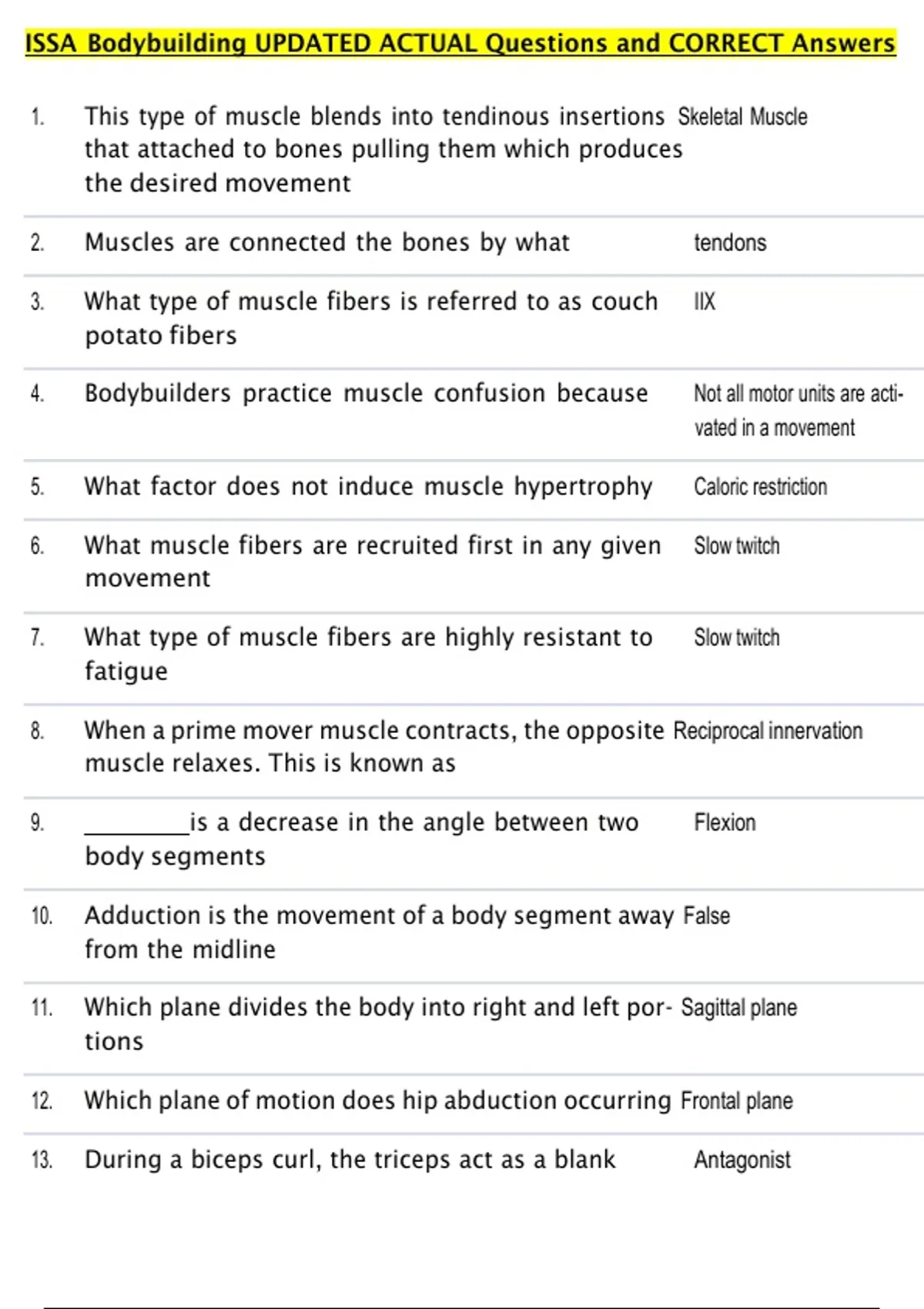 ISSA Bodybuilding UPDATED ACTUAL Questions and CORRECT Answers