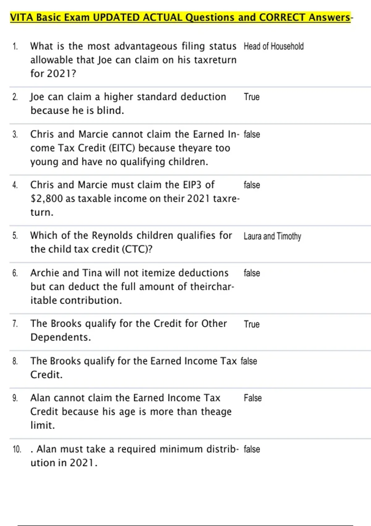 8. The Brooks qualify for the Earned Income Tax false