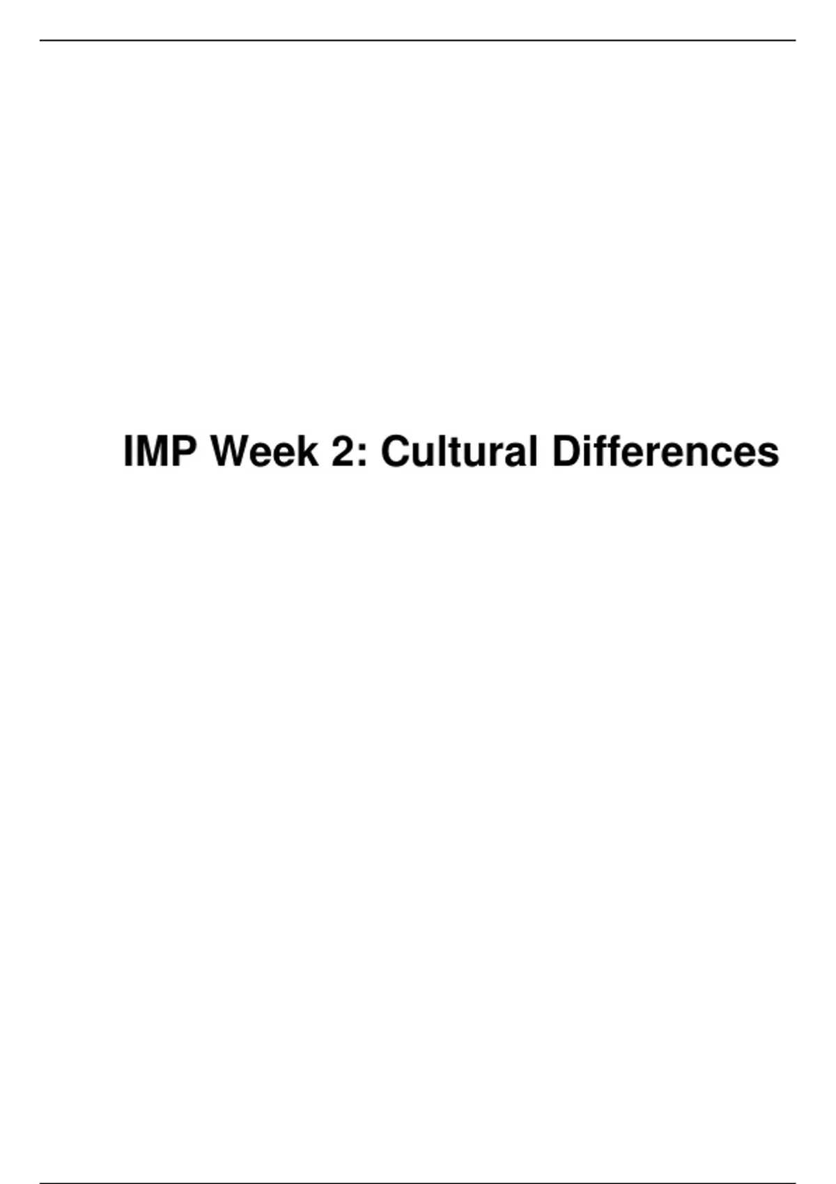 Covers cultural differences and Hofstede’s dimensions: individualism vs collectivism, power distance, masculinity vs femininity, and uncertainty avoidance, plus Dutch case examples and religious (Islam) differences with youth data. Concise lecture notes for week 2 of a multicultural intergroup relations module with slides-style figures and country comparisons, useful for exam revision and seminar preparation.