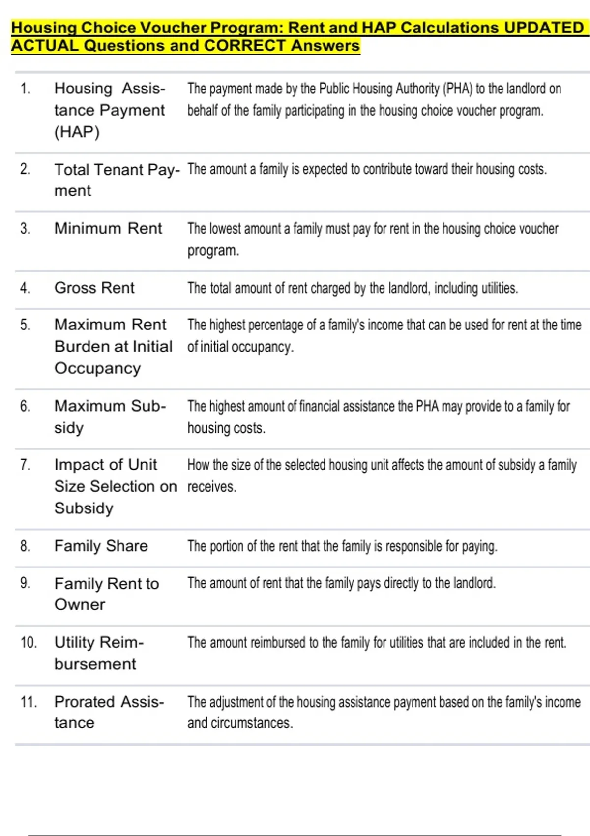 Housing Choice Voucher Program: Rent and HAP Calculations UPDATED ACTUAL Questions and CORRECT Answers