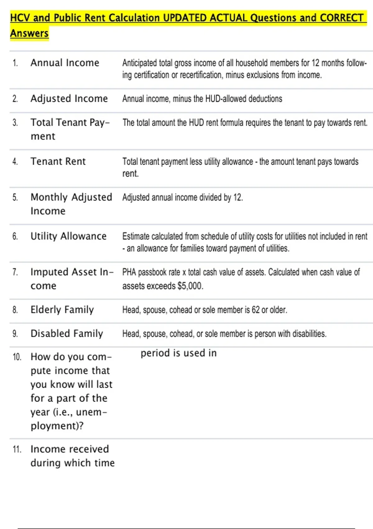 HCV and Public Rent Calculation UPDATED ACTUAL Questions and CORRECT