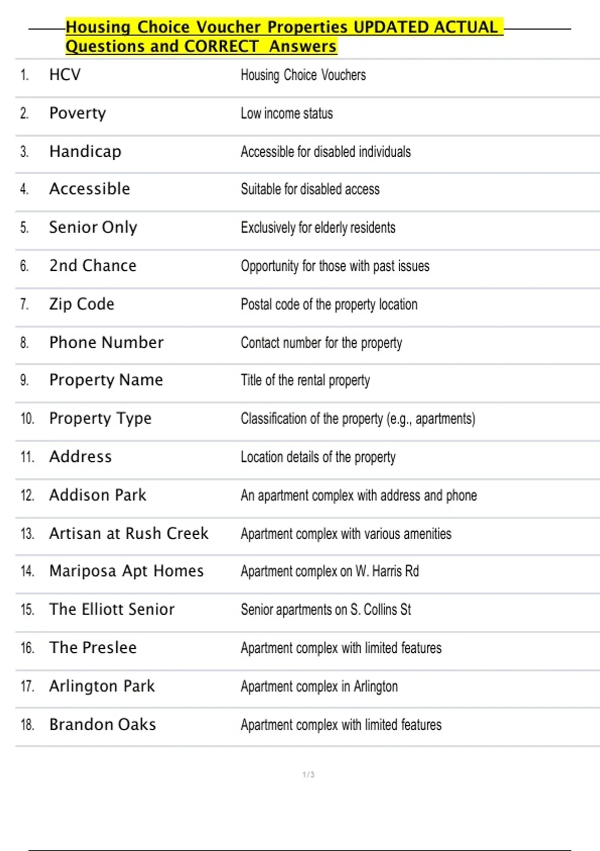 Housing Choice Voucher Properties UPDATED ACTUAL Questions and CORRECT Answers