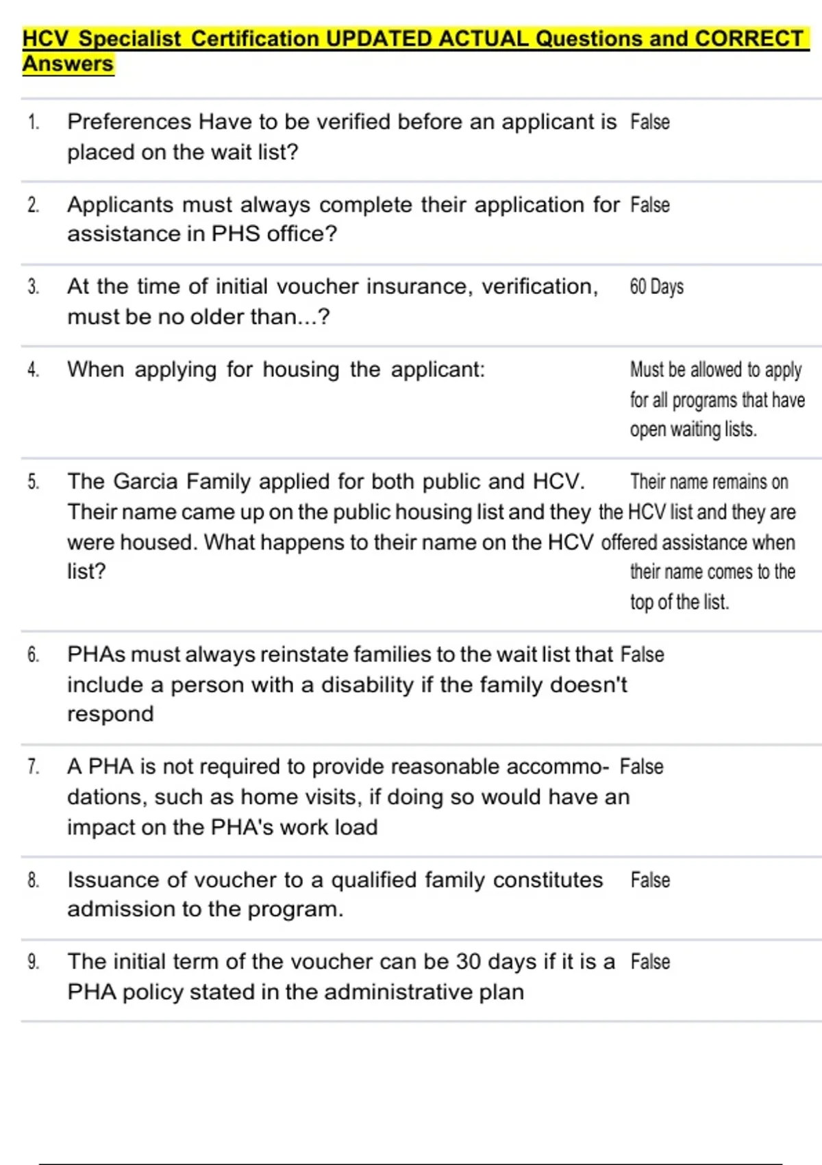 HCV Specialist Certification UPDATED ACTUAL Questions and CORRECT