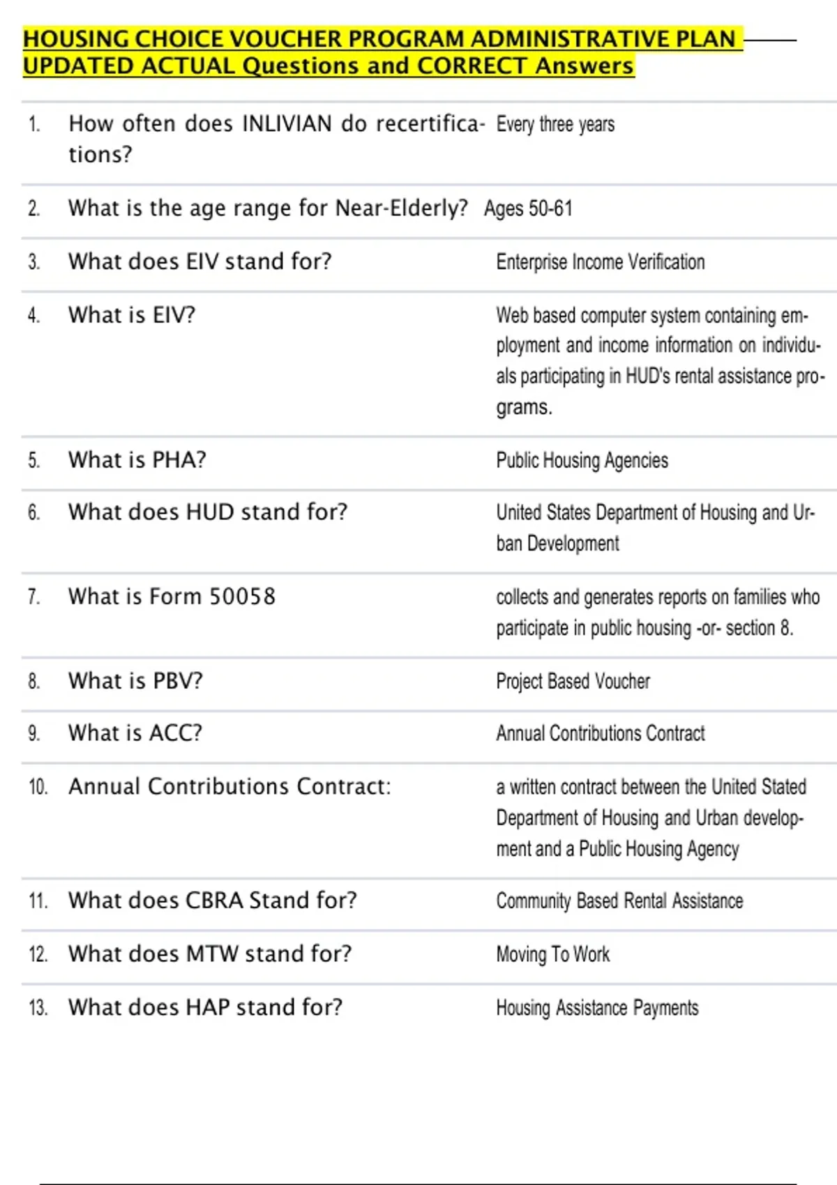 HOUSING CHOICE VOUCHER PROGRAM ADMINISTRATIVE PLAN UPDATED ACTUAL Questions and CORRECT Answers
