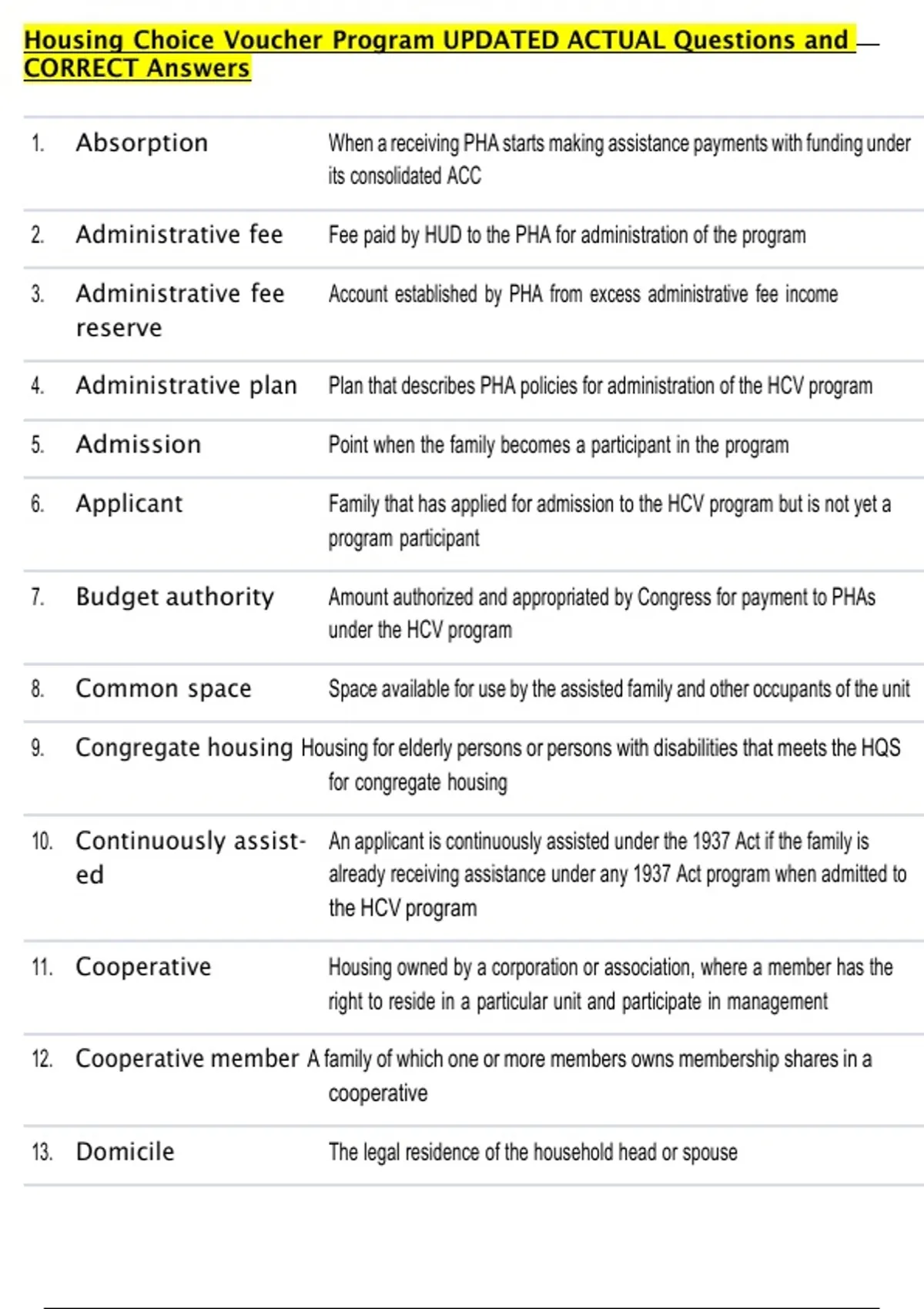 1. Absorption When a receiving PHA starts making assistance payments with funding under